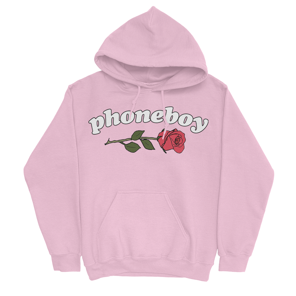 The Phoneboy Rose design, printed on a comfortable, standard-fitting pink pullover hoodie.